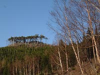 | この細い林道を登っていくのですが、ルートはしっかりとついています。 | 少し分かりづらいですが、ここが剣ケ峰頂上直下 のベンチです。左側の黒っぽいのがベンチです。 |