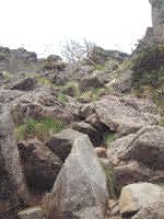 さてここから先は小さなアップダウンを繰り返しながら山頂に向かいます。途中で1ケ所鎖がかかっている場所もあり そして天狗の鼻の岩峰の右側をまわり込んで、一度ほんのちょっと下ってから山頂への最後の登りになります。もう山頂は目の前です。(下写 真左)山頂へのガレ場を歩いて、ようやく東天狗岳の山頂に着きました。白駒池からここまでで、約3時間〜3時間半程みれば良いと思います。東天狗岳の山頂は思っていたよりも狭いので、休む時は少し端の方によけて下さい。ここも縦走路になっていますので。西を見るとすぐ目の前に西天狗岳が見え、その先には北アルプスが見えます。南の方には硫黄岳から奥には赤岳から中岳、阿弥陀岳の南八ヶ岳も望めます。その向こうには南アルプス北部の山々が見えるでしょう。 以上で東天狗岳へのコース紹介を終わります。今回はニュウ廻りのコースを紹介していますが、高見石から中山を歩くコースもあります。好みに合わせてどちらのルートを選んで頂いて構いません。ただ管理者の好みでニュウ廻りを選びました。それでは皆さん、安全登山を。 |